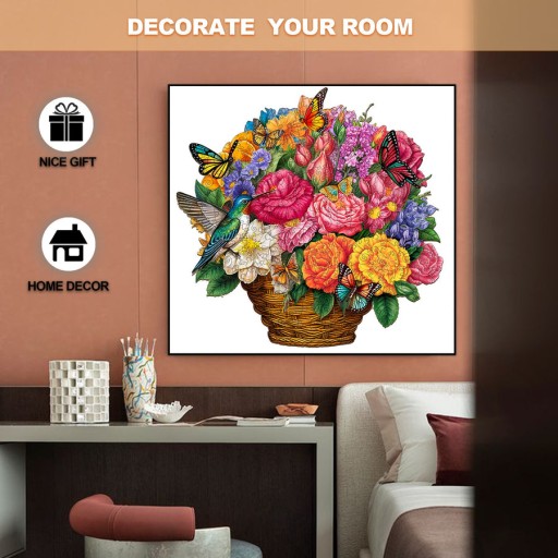 DREWNIANE PUZZLE DLA DOROSŁYCH DUŻE KOSZ KWIATÓW