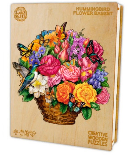 БОЛЬШОЙ ДЕРЕВЯННЫЙ ПАЗЛ 300 ШТУК ЦВЕТОЧНАЯ КОРЗИНА В ДЕРЕВЯННОЙ КОРОБКЕ