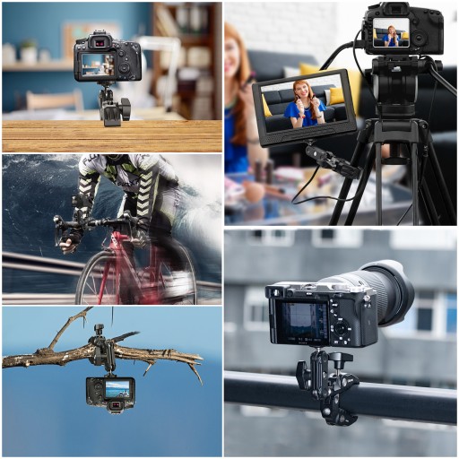 ✔️ Uniwersalny - Stosowany jest do mocowania aparatów, kamer, uchwytów na telefon, lamp, mikrofonów, monitorów LCD.