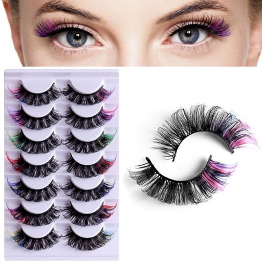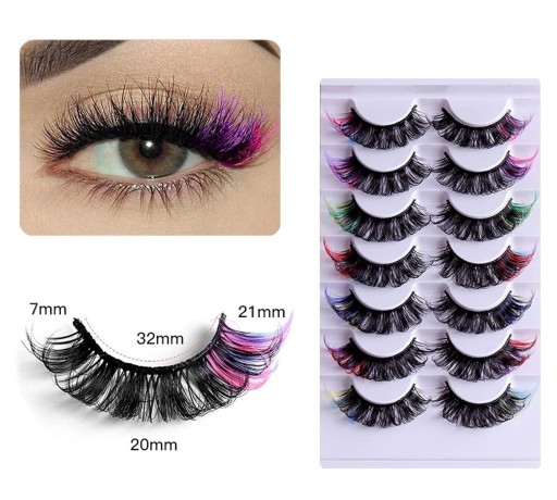 Накладные ресницы на полоске 7 пар шелковые мягкие ЧЕРНЫЕ + ЦВЕТНЫЕ