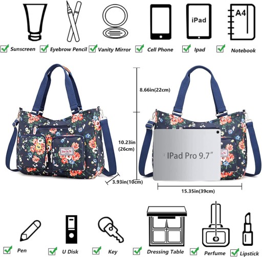 - Materiał odporny na zniszczenia iw 100% szkodliwy: Wysokiej jakości wodoodporna nylonowa torebka i torba dla kobiet. Zapewnia miękki i wygodny dotyk, a także wnętrze wykonane z poliestru, który jest wytrzymały i działający.