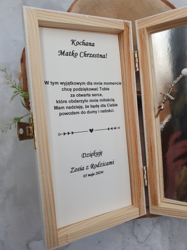 Przedstawiamy Państwu drewnianą skrzyneczkę jako formę podziękowania Chrzestnej, Chrzestnemu, Babci, Dziadkowi, gościom.