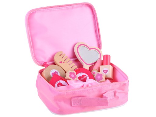 Kosmetyczka kuferek dla dzieci z drewnianymi akcesoriami to uroczy zestaw dla każdej małej wizażystki. Wieloelementowy zestaw pozwoli każdej małej dziewczynce na wyśmienitą zabawę. Zestaw do stylizacji zawiera wszystko, co potrzebuje mała wizażystka w salonie piękności. W skład zestawu wchodzą elementy drewniane oraz zamykana kosmetyczka na suwak.