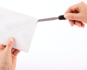 Nóż z wygodną rękojeścią przeznaczony do bezpiecznego odwierania kopert. - długość całkowita 195 mm