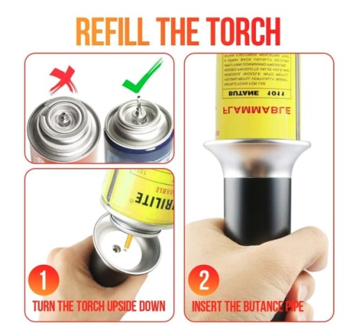 Napełnij lampę do gotowania butanem i po prostu naciśnij przycisk. Następnie wyłącz płomień. Temperatura może osiągnąć 1300c / 2500F, aby spełnić różne wymagania. Idealny do grillowania, kremu, brulee, pieczenia, lutowania biżuterii DIY, cygar zapłonowych i itp.