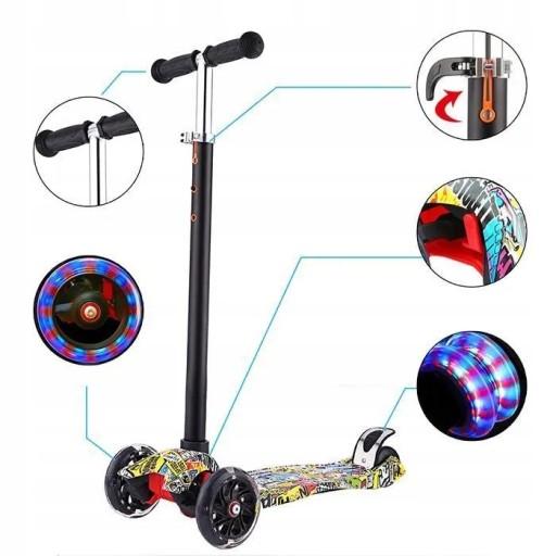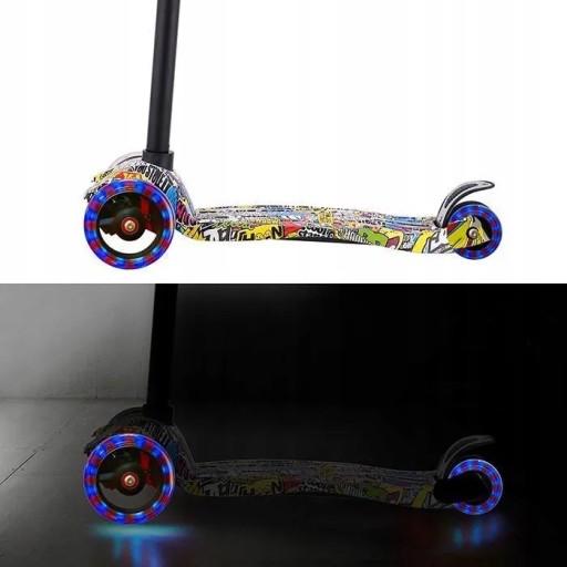 ТРЕХКОЛЕСНЫЙ БАЛАНСИРОВАННЫЙ САМОКАТ СО СВЕТОДИОДНЫМИ КОЛЕСАМИ ГРАФИТТИ