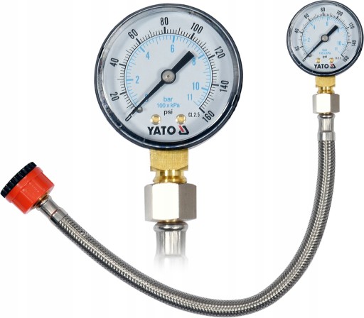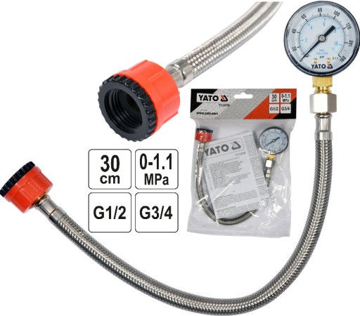 YATO Тонометр с манометром со шлангом, внешняя резьба 3/4 и 1/2", 30 см