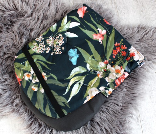 Wzory: kwiaty na ciemnym tle + podnóżek grafitowy