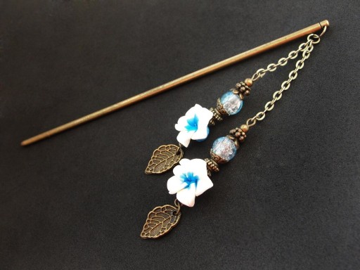 Заколка, заколка, заколка для волос, пучок - Синие и белые цветы