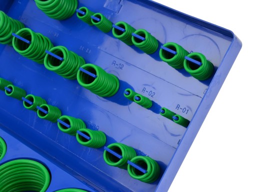 Profesjonalny zestaw o-ringów do klimatyzacji w średnicach otworów od 3.15 do 50 mm oraz grubości 1.8, 2.65 oraz 3.5 mm.