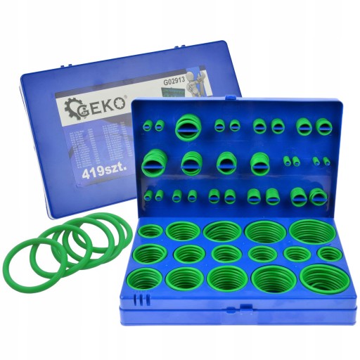 НАБОР УПЛОТНИТЕЛЬНЫХ КОЛЬЦ GEKO - УПЛОТНЕНИЯ КОНДИЦИОНЕРА 419 ШТ. ЗЕЛЕНЫЙ ЧЕМОДАН G02913