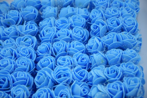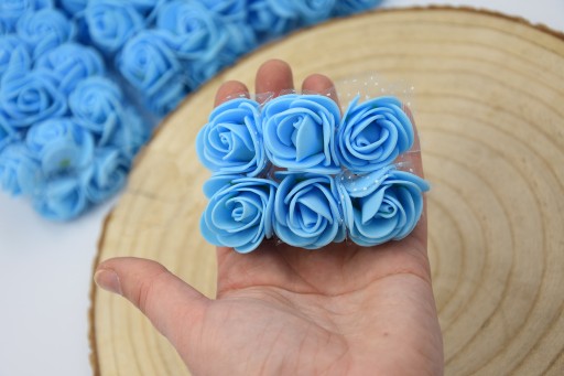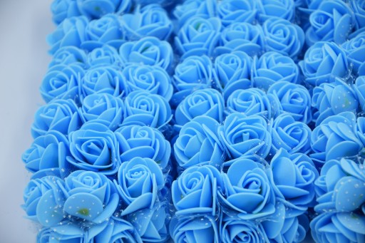 KWIATKI piankowe różyczki na druciku 72 szt NIEBIESKI