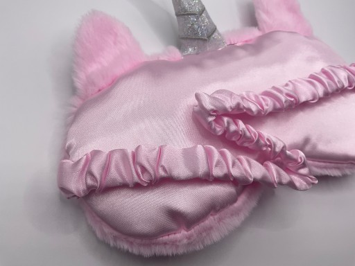 MASKA NA OCZY DO SPANIA JEDNOROŻEC UNICORN RÓŻOWY PLUSZOWY, tęczowy kosmyk