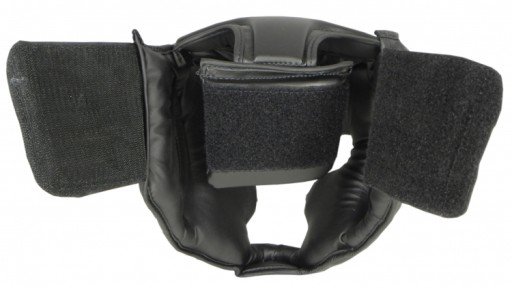 Kask sparingowy KSS-4BP wykonany ze skóry syntetycznej. W pełni zabudowany z ochroną kości policzkowych, brody i górnej cześci głowy.