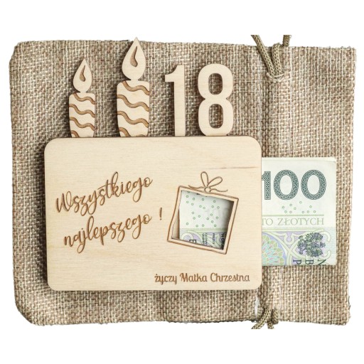 PUDEŁKO NA PIENIĄDZE PREZENT 18-100 URODZINY PERSONALIZACJA IMIĘ KOPERTA