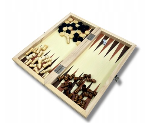 ДЕРЕВЯННЫЕ КАРМАННЫЕ ШАХМАТЫ 3в1 МАЛЕНЬКИЕ ШАШКИ 24 СМ