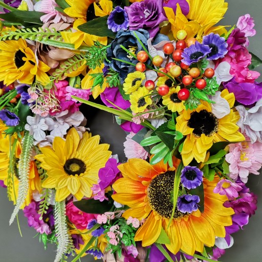 Prezentujemy Państwu własnoręcznie wykonane wianki dekoracyjne w bogatej gamie kolorystycznej, ozdabiane wysokiej jakości sztucznymi kwiatami, zielonymi gałązkami oraz akcesoriami florystycznymi.