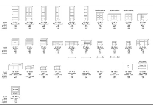 W szkicowniku znajdują się wszystkie wymiary dla oferowanych mebli PALERMO.