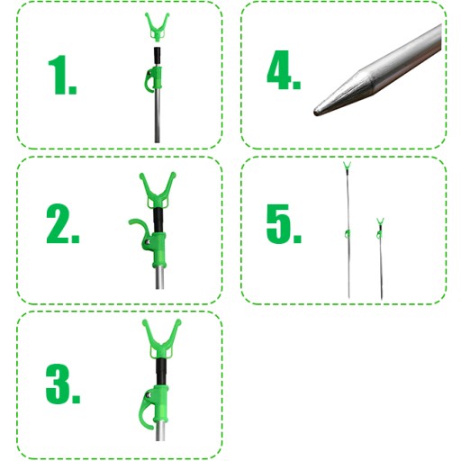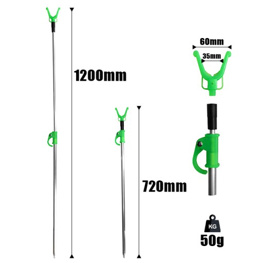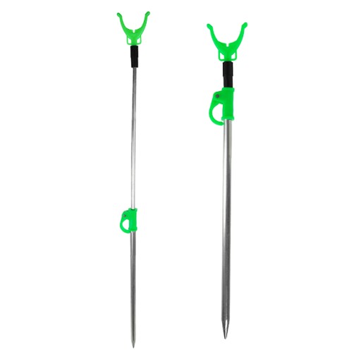 Podpórka posiada intuicyjny uchwyt, umożliwiający płynną regulację wysokości. To istotne podczas dostosowywania sprzętu do zmieniających się warunków terenowych czy preferencji wędkarza.