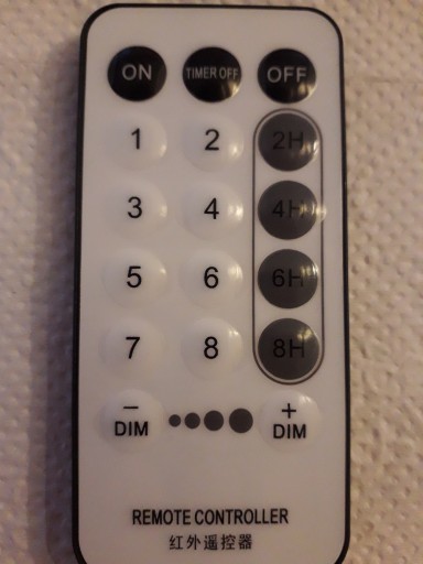 Pilot z funkcją ściemniania oraz z funkcją ustawienia czasu świecenia. Można ustawić czas 2h, 4h, 6h,8h.