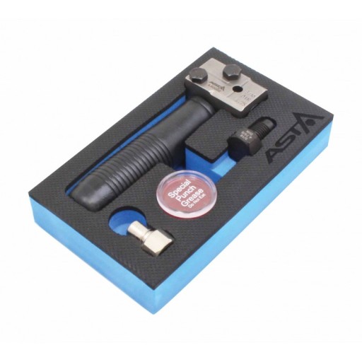 - W zestawie narzędzie do kielichowania, jednostronny stempel OP1, smar do matryc i śruba pozycjonująca.