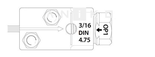 - Odkręć śrubę pozycjonującą i włóż koniec stempla OP1. Całkowicie dokręć, tak aby sześciokąt stempla przylegał płasko do narzędzia.