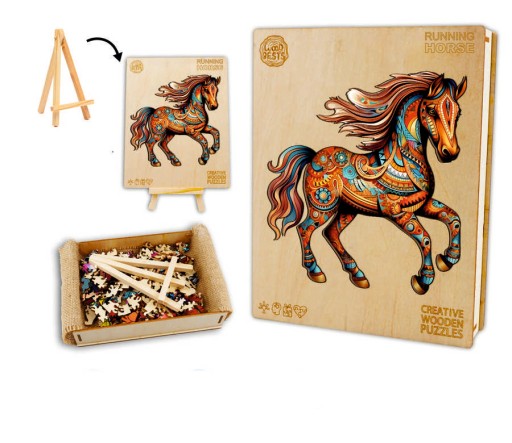 DREWNIANE PUZZLE DLA DOROSŁYCH DUŻE GALOPUJĄCY KOŃ