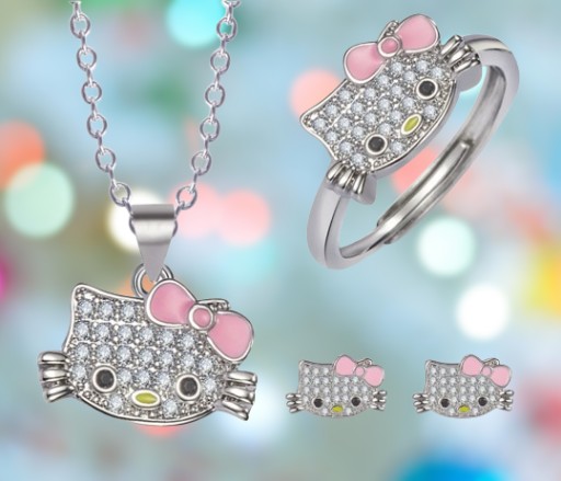 Komplet Hello Kitty Naszyjnik Kolczyki Pierścionek