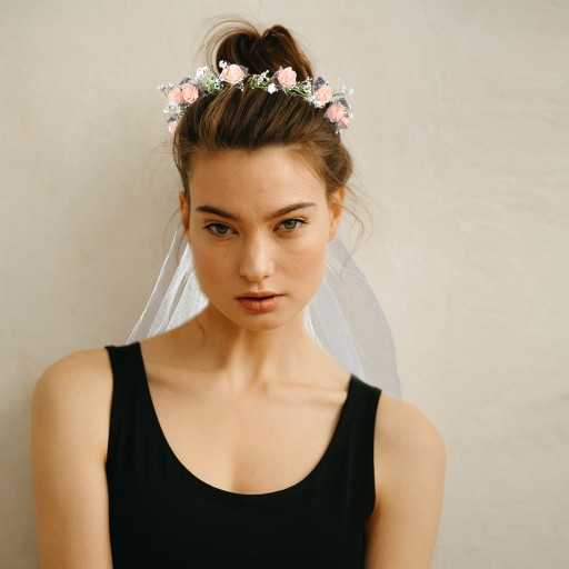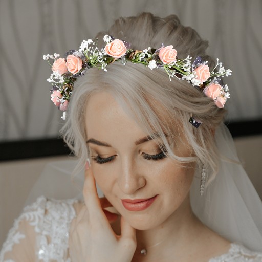 ✅ Ozdobiony realistycznymi kwiatami i delikatnymi detalami, stylowy i elegancki, nakrycie głowy w kształcie korony jest idealne dla Twojej panny młodej.