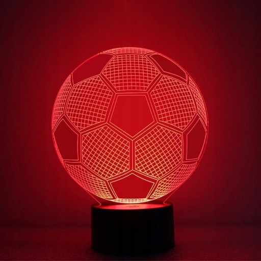 Lampka nocna dla dzieci w postaci piłki nożnej. Płytka z której wykonana jest piłka ma właściwości wysokiej przepuszczalności światła, dzięki czemu oświetlenie w podstawce oraz wykonany w płytce wzór piłki dają wręcz magiczny efekt przestrzeni 3D. Lampka daje niepowtarzalny klimat wieczorem w pokoju.