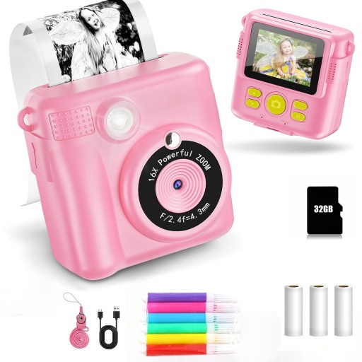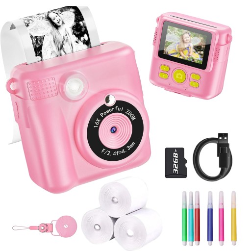 ✅Kompletne akcesoria: smycz w tym samym kolorze pomaga dzieciom zabrać aparat ze sobą wszędzie; karty Micro SD 32 GB nie trzeba kupować osobno; a 5 kolorowych ołówków pozwala dzieciom puścić wodze fantazji i kreatywności na drukowanych czarno-białych zdjęciach. Dzięki 3 rolkom certyfikowanego papieru do druku termicznego dzieci mogą korzystać z aparatu natychmiastowego przez ok. 200 sztuk zdjęć.