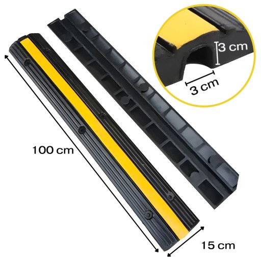 Nasze najazdy kablowe to gwarancja solidnej ochrony! Z wyjątkową nośnością wynoszącą aż 8 ton na oś, ten niepozorny produkt staje się niezawodną ochroną twoich kabli. Bez względu na masę pojazdów, które na niego najadą, Twój system przewodów pozostanie nienaruszony.