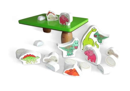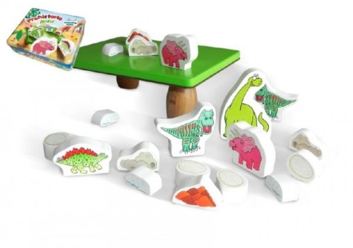 Zábavná hra nejen pro malé. Postavte dinosaury na zemskou desku tak, aby z ní nespadli a deska se nepřeklopila. Pozor na zemětřesení. Balanční hra podporuje jemnou motoriku, koordinaci, vnímání rovnováhy. Všechny komponenty jsou dřevěné. Rozměry balení 24 x 20 x 7 cm. Vhodné pro děti od 3 let.