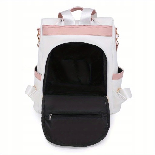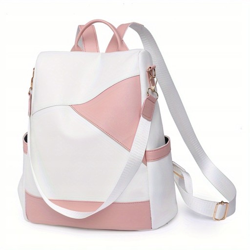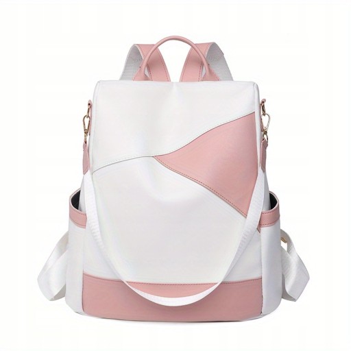 Damska torebka z plecakiem Colorblock: podróżna torba szkolna z zabezpieczeniem przed kradzieżą z paskiem na ramię ze sztucznej skóry i odpinanym paskiem