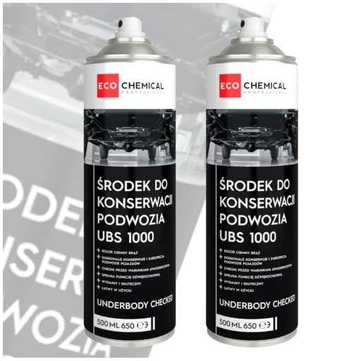 UBS1000 Ecochemical to produkt do konserwacji podwozia na bazie bitumiczno - kauczukowej. Dzięki elastycznej powłoce chroni podwozie samochodu przed uderzeniami kamieni, wodą, solą oraz działaniem czynników mechanicznych. Spełnia funkcję dźwiękochłonną.