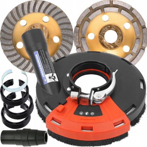 - osłona ze szczotek, które tworzą szczelną barierę między adapterem a szlifierką