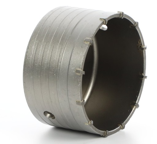 ➡️ Solidna koronka wiertnicza z widią. Metalowa część konstrukcyjna została wykonana ze stali. Natomiast wieniec zębaty powstał z wysoce wytrzymałego węglika spiekanego.