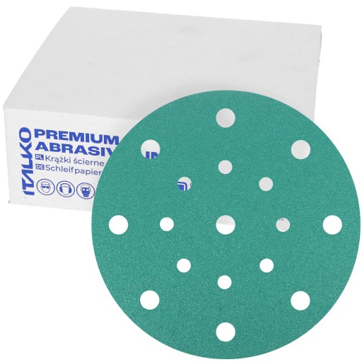 Krążki ścierne ITALKO typ FESTOOL to wysokiej jakości krążki mocowane na rzep na podłożu z folii, która zwiększa ich elastyczność i odporność na zrywanie.