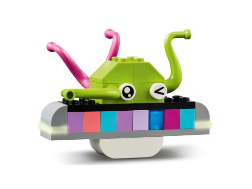 Dzieci układają kolorowe klocki, aby zbudować zabawkową rakietę, kosmitę, astronautkę i mały układ słoneczny obejmujący Marsa, Ziemię, Słońce i Saturna z pierścieniami. Modele kosmiczne można następnie przebudować, korzystając z innych kolorów, kształtów, oczu, min i podstawki, dzięki której można obracać model. W zestawie są także klocki świecące w ciemności. Kosmiczna kreatywność nie musi się kończyć, bo dzieci mogą przebudować modele na układ słoneczny składający się z ośmiu planet. Przewodniki i cyfrowe dodatki są dostępne również w aplikacji LEGO Builder.