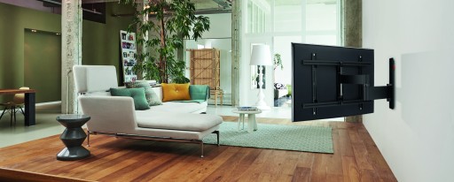 Zamontuj telewizor na ścianie za pomocą w pełni ruchomego uchwytu ściennego aby mieć najlepszy widok na telewizor z dowolnego miejsca w pomieszczeniu. Wystarczy obrócić telewizor w stronę.