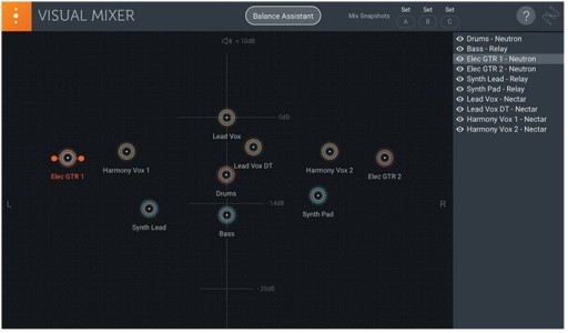 Regulacja wzmocnienia, panoramy i szerokości dowolnej instancji Neutrona lub Relay w trakcie sesji. Lub użyj Mix Assistant, aby uzyskać świetny miks szybciej niż kiedykolwiek wcześniej.