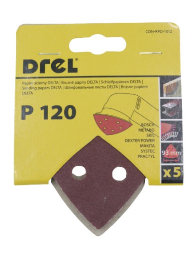 PAPIER ŚCIERNY NA RZEP DELTA ŻELAZKO 93 x 93mm DO SZLIFIERKI gr 120 5szt