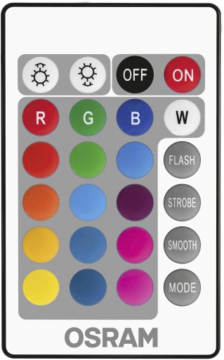 Dzięki nowym zdalnie sterowanym diodom LED umieszczonym w żarówce RGBW marki Osram możesz w bardzo prosty sposób sprawić, że każda oprawa w Twoich pomieszczeniach będzie przyciągać wzrok. Z dołączonym do zestawu pilotem na podczerwień z łatwością stworzysz własne światy kolorów, które cechować się będą niepowtarzalnym i unikalny nastrojem. Zabawę kolorami dopełniają automatyczne efekty świetlne takie jak błyski, stroboskopy lub delikatne zmiany kolorów. Ponadto lampa zapewnia klasyczne ciepłe białe światło, gdy jest ono potrzebne. Dodatkowo za pomocą pilota IR można przyciemniać lub rozjaśniać światło w zależności od preferencji. Produkt o bogatej funkcjonalności, który zmieni Twoje dotychczasowe postrzeganie na światło.