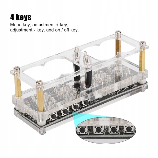 W zestawie z baterią guzikową. Lampy CR1220.4 nie są wyposażone i należy je zakupić osobno. Model z lampą nixie to IN-12B, inne lampy nixie nie są obsługiwane.