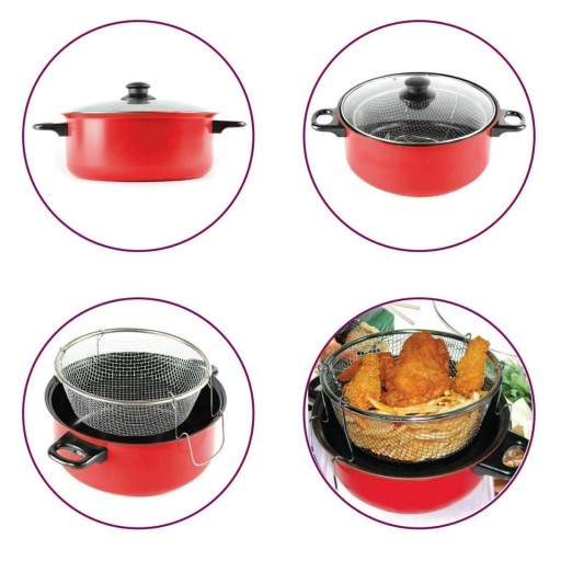 Garnek z koszem do smażenia frytek oraz innych potraw wymagających zanurzenia w głębokim oleju. Dzięki wyjmowanemu koszowi możemy łatwo zanurzać i wyjmować przygotowywaną potrawę.