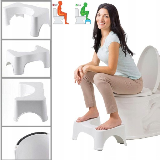 Podnóżek koryguje postawę podczas korzystania z toalety, dzięki czemu wypróżnienie jest łatwiejsze. Symuluje naszą naturalną pozycję i rozluźnia odpowiednie mięśnie. To prosty i sprawdzony sposób w leczeniu zaparć. Stołek powoduje podwyższenie kąta, zwieracz w pozycji kucznej (35°) zostaje w pełni rozluźniony, umożliwiając łatwe i pełne wypróżnianie.