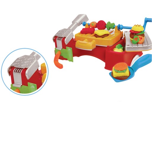 W zestawie znajduje się łącznie 5 słoiczków plasteliny w różnych kolorach, które symulują różne rodzaje jedzenia do grillowania. Dzięki nim dziecko może dowolnie kształtować i tworzyć potrawy.