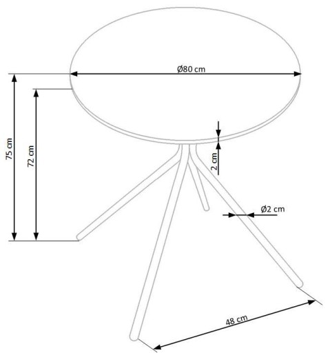 - Wykonany z płyty MDF lakierowanej na kolor czarny mat. Blat okrągły o średnicy 80 cm.