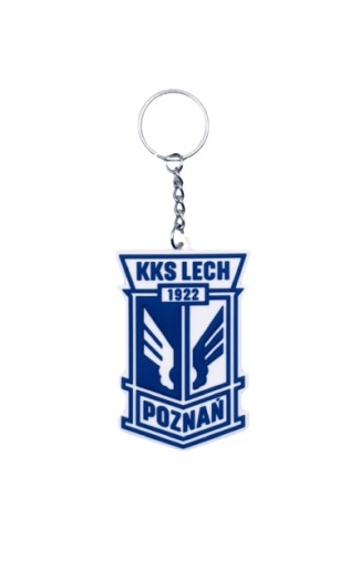 Silikonowy breloczek w kształcie herbu Kolejorza, na jego odwrocie znajduje się napis "Lech Poznań"
