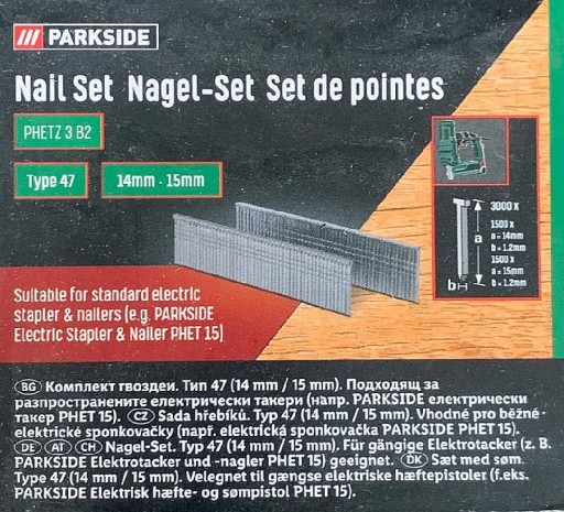 НАБОР ГВОЗДЕЙ ТИП 47 14MM 15MM 3000 ШТУК PARKSIDE